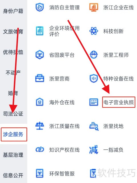 3、 进入更多页面,选择涉企服务,点击电子营业执照,按提示完成操作即可。