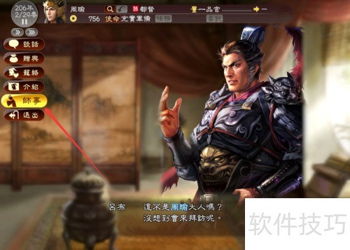 5、 当与某位武将的亲密度超过60或彼此存在特定状态时,便可选择师事关系。
