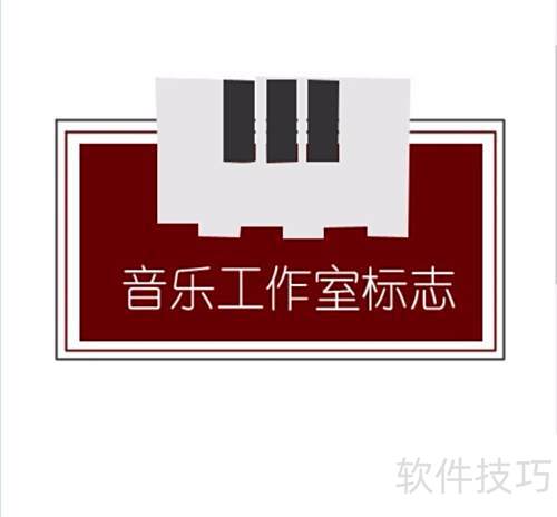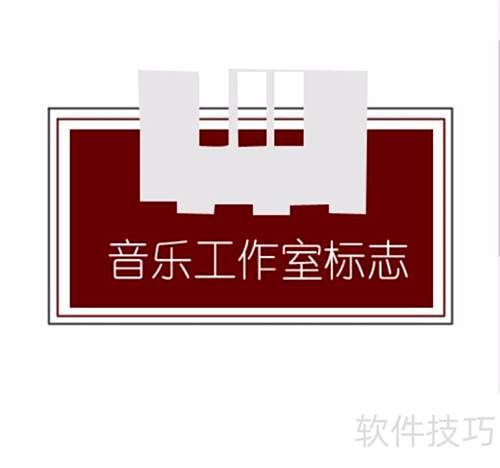3、 在暗红色背景上添加白色工作室名称,调整字号与位置,使其居于标志下方,保持整体协调美观。