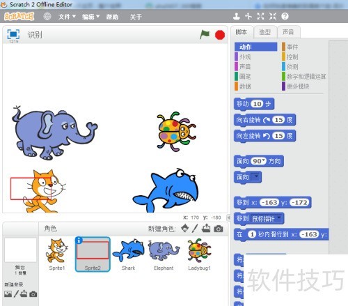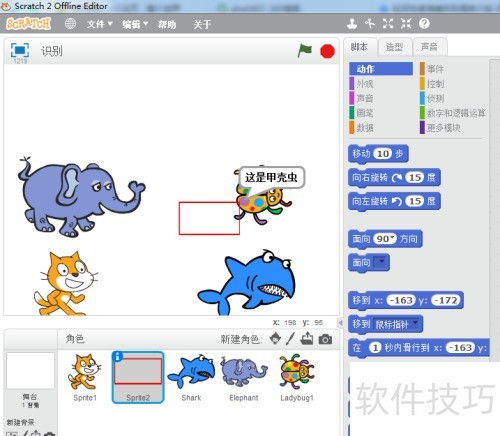 1、 引入甲壳虫、大象、鲨鱼等角色,训练程序自动识别出甲壳虫。