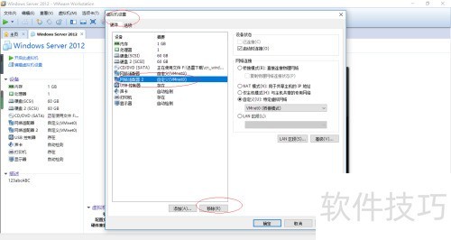 5、 进入虚拟机设置,选择硬件中的网络适配器2,点击移除按钮将其删除。