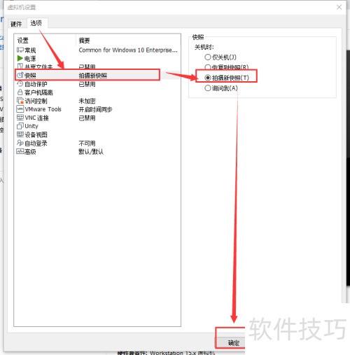 在VMware Workstation Pro中,关机前选择保存快照选项,或手动创建快照以保留虚拟机当前状态。