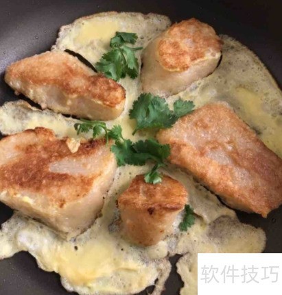 5、 煎至金黄后翻面,继续煎制另一侧。