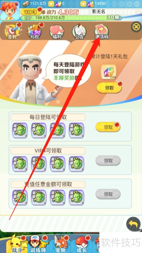 3、 输入激活码并点击领取,即可获得相应奖励。