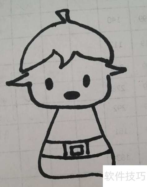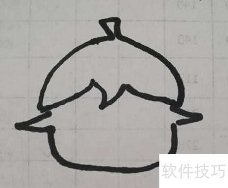 1、 第一步:参照图示,勾勒小精灵的面部轮廓。