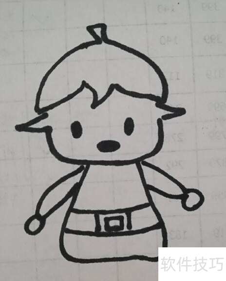 6、 第六步:参照图示,绘制小精灵的双腿部分