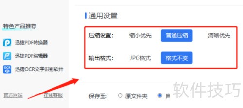 4、 四、滚动至页面底部,选择所需的压缩设置与输出格式,可逐项设置,也可全选图片统一调整,操作灵活便捷。