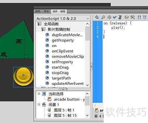 13、 为按钮设置释放时执行播放的动作脚本。