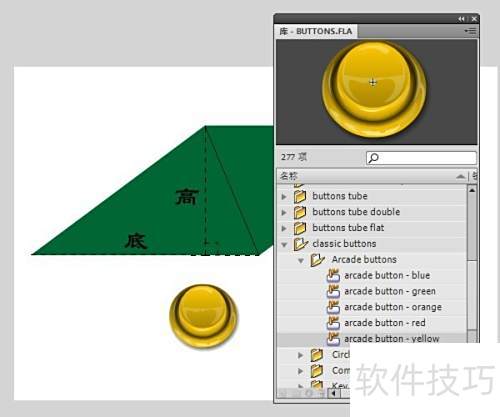 12、 每个文件夹代表一种按钮样式,内含多种颜色选项,双击即可浏览选择。我选中了街机风格的黄色按钮。
