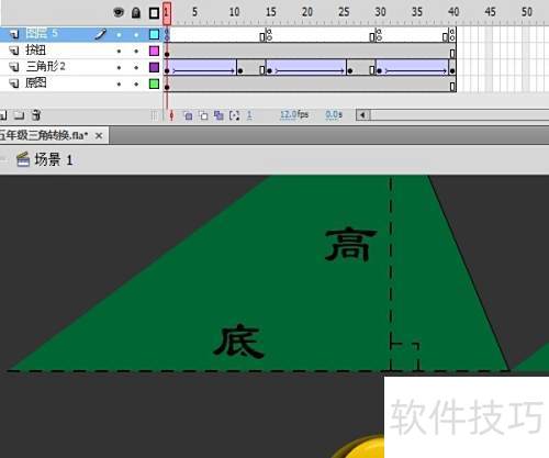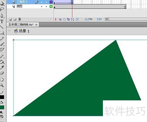 4、 新建图层,复制三角形并转为元件,按F8键确认,移至原图右侧。