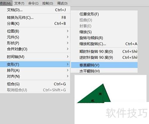8、 接着进行修改、变形,执行水平与垂直翻转,将元件调整至图示位置。