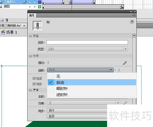 9、 返回第15帧插入补间动画,旋转选择自动,实现第二次位移。