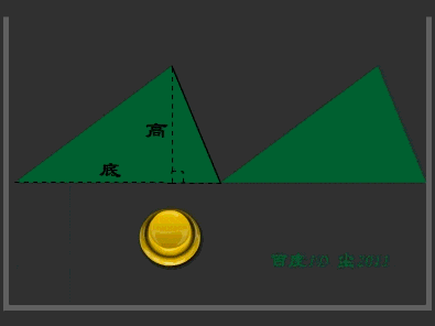 在五年级数学课件中,通过两个完全相同的三角形拼合成平行四边形。将其中一个三角形进行移动、旋转与重新排列,逐步展示转化过程。为配合教师讲解中的提问与启发,动画设计为分步操作,每次点击按钮执行一个动作,而非连续播放,确保教学节奏与学生理解同步。
