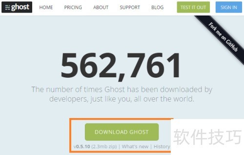 4、 访问 ghost.org/download 官方页面,点击下载按钮获取最新版本的 zip 文件。