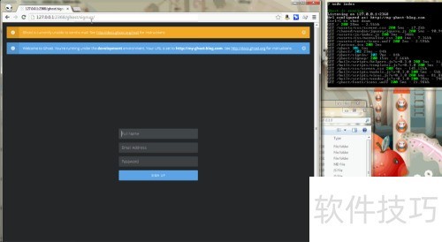 12、 访问 127.0.0.1:2368/ghost,完成管理员账户配置并登录 Ghost 后台管理系统。