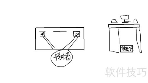 1、 所示,听众与音响呈三角布局,低音炮则置于下方适当位置。