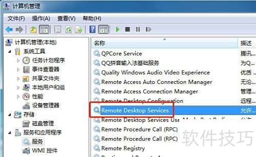 在Win7系统中,通过服务管理器找到Remote Desktop Services,右键选择重启即可。