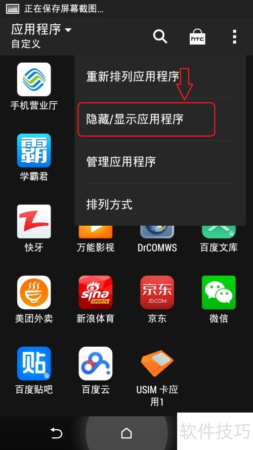 3、 在下拉菜单中选择隐藏/显示应用程序功能即可。