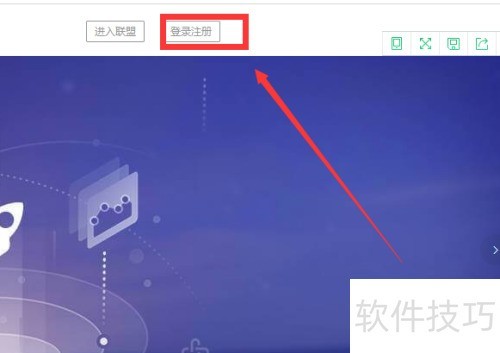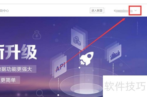 4、 登录联盟账号,点击用户名旁的标志,所示。