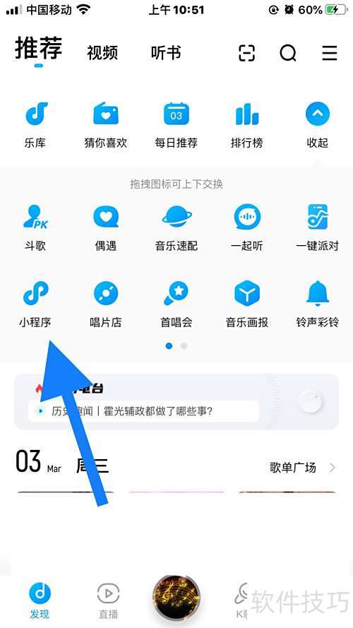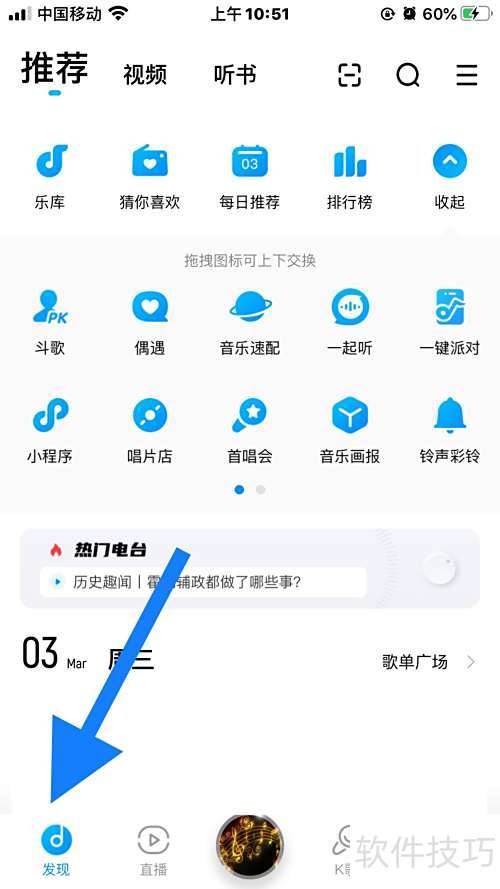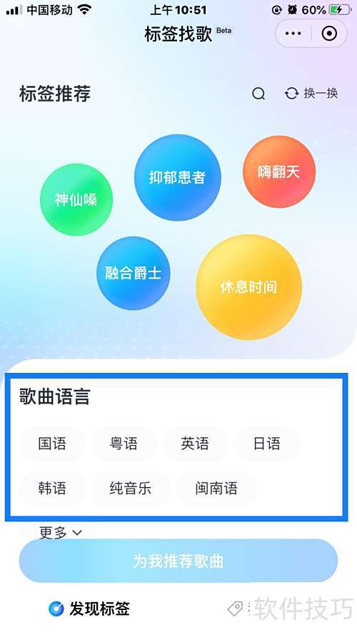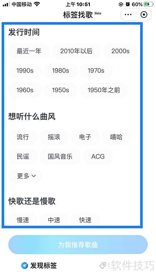 3、 点击标签后,再选底部的为我推荐找歌即可。