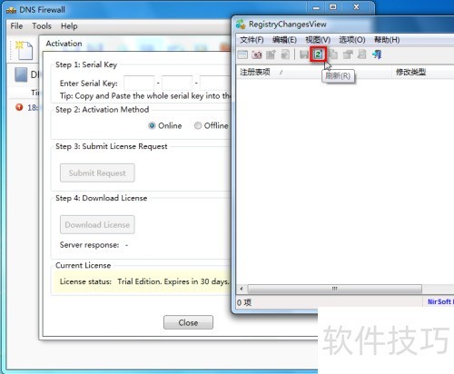 3、 运行DNS防火墙后,返回RegistryChangesView界面并点击刷新按钮以更新状态。