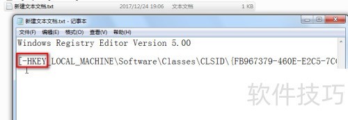 5、 新建文本文档,粘贴内容后在HKEY前加减号-,保存文件即可。
