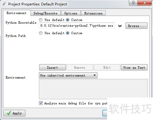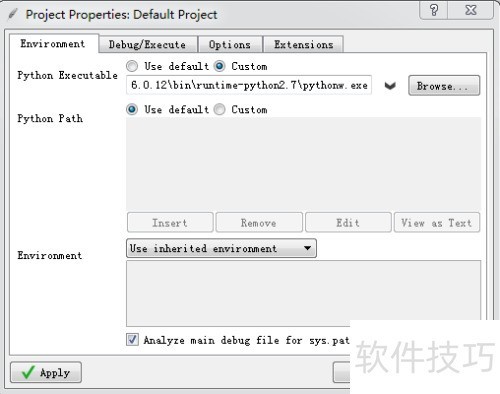 6、 选择自定义选项,点击浏览按钮,找到并选中pythonw.exe文件即可。