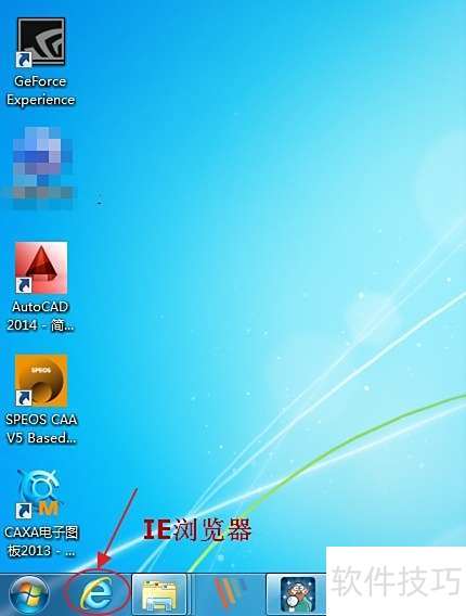 1、 在电脑屏幕下方的任务栏上单击IE浏览器图标,或依次点击开始菜单、所有程序,然后选择并打开Internet Explorer。
