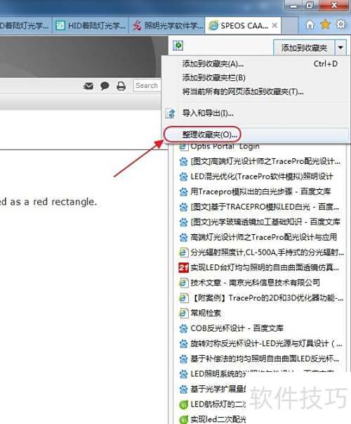 4、 点击添加收藏夹旁的下拉箭头,从菜单中选择管理收藏夹即可进行相关操作。