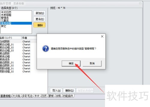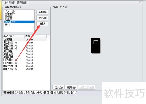 3、 在插件管理的普通相框对话框中,从类型列表选择需删除的相框类型。