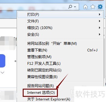3、 在弹出菜单中选择Internet选项并点击。