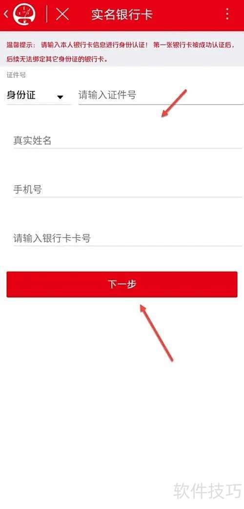 4、 填写页面信息后点击下一步,即可完成银行卡添加操作。