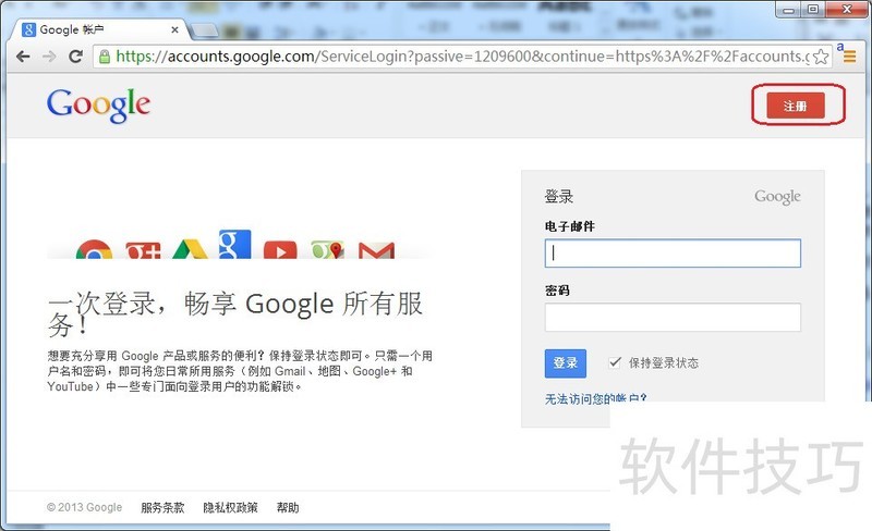 2、 在浏览器地址栏输入 https://accounts.google.com,按下回车键,即可进入 Google 账号登录页面。