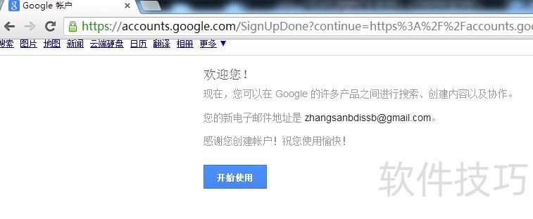 11、 Gmail申请已成功,请务必牢记您的账号和密码。