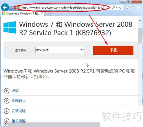 7、 前往Windows 7 SP1安装页面,点击下载按钮即可获取。