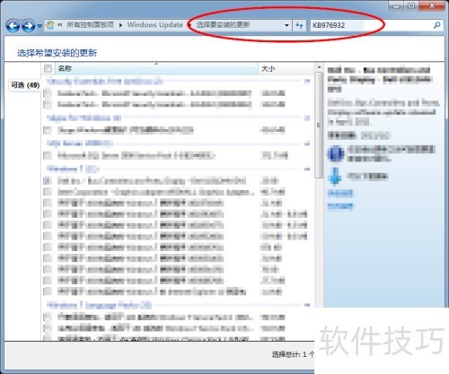 3、 查看更新列表右上角,搜索是否存在编号为KB976932(sp1)的更新项目。