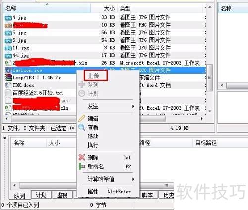 5、 接下来需将favicon.ico图标上传至网站根目录,首先通过LeapFTP软件登录网站目录,完成连接后进行文件上传操作。