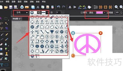 2、 现在开始绘制图标,可从图示符号选项中选取更多图标样式。