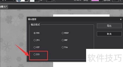 5、 在弹出的导出窗口中,选择ICO格式选项,点击导出按钮,即可将选定图形保存为ICO格式的图标文件。