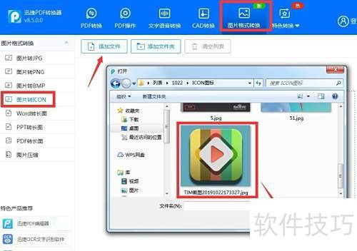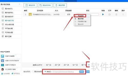 6、 可利用图示的格式转换工具,将图片转换为ICON图标。操作时,只需切换至图片转ICON的界面即可完成转换。