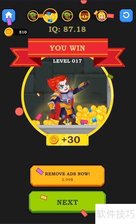 5、 少年拾获掉落宝藏,随即触发通关动画,顺利通过关卡。