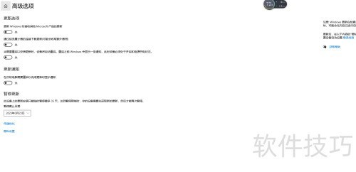 2、 进入Windows更新的高级选项进行设置