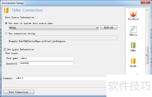 5、 选择ODBC,填写连接信息后点击确定即可。