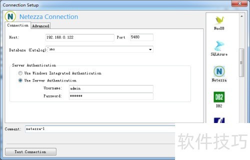 5、 选择netezza,填写连接信息后点击确定即可完成操作。