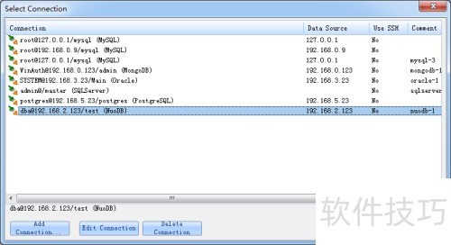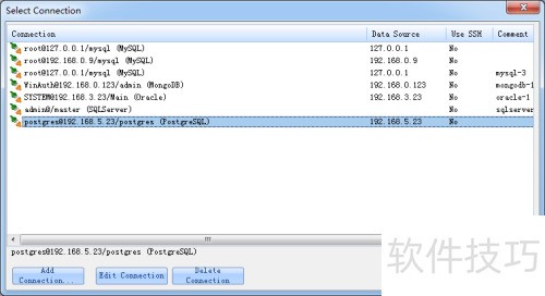 3、 此时会弹出一个对话框,列出已存在的数据库连接。
