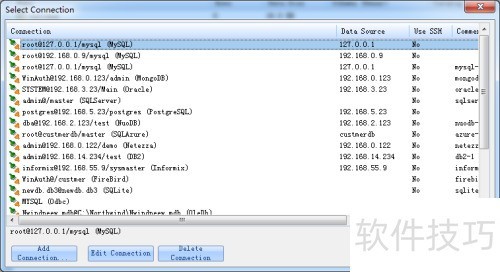 2、 此时会弹出对话框,选择所需操作的数据库连接,随后点击按钮即可。