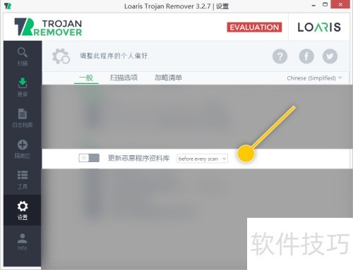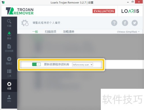 1、 在Trojan Remover主界面,选择左侧菜单中的设置选项。