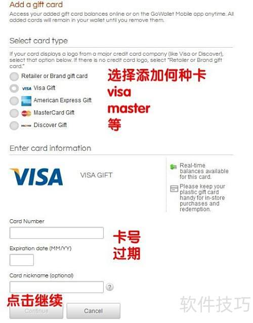 12、 第四步,选择卡类型,填写卡信息后点击继续。