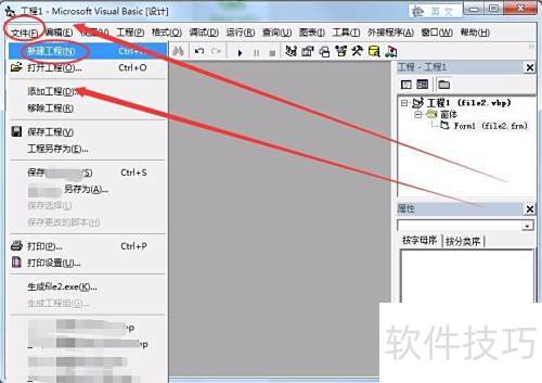 2、 在打开的VB界面中,依次点击文件菜单并选择新建工程。
