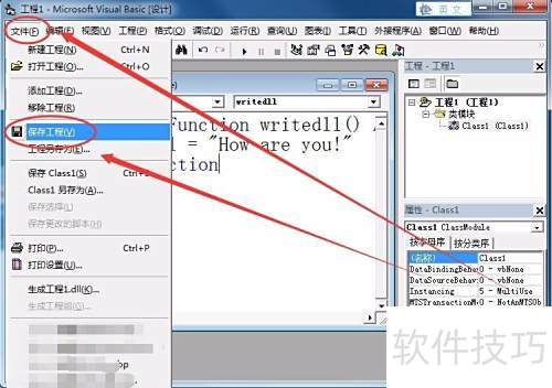 5、 点击文件菜单,选择保存工程,完成DLL工程的保存操作。